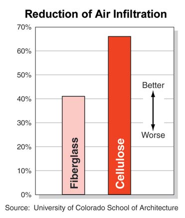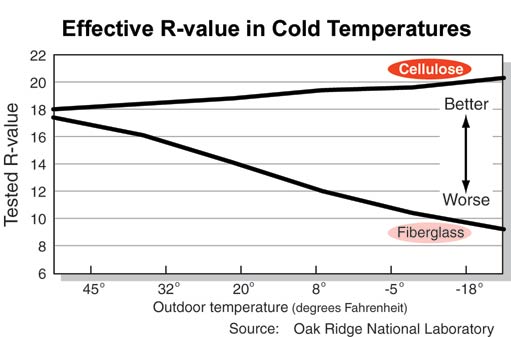 - Cellulose has better resistance to air flow and prevents the upward movement of air caused by temperature differences (the R-value of cellulose actually improves during cold weather).