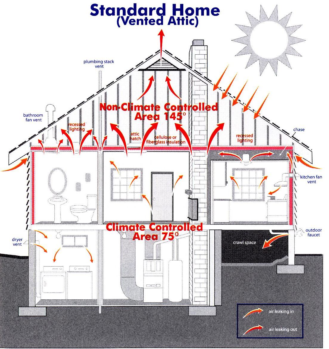 Standard home Attic-Air Temperature = 145 degrees